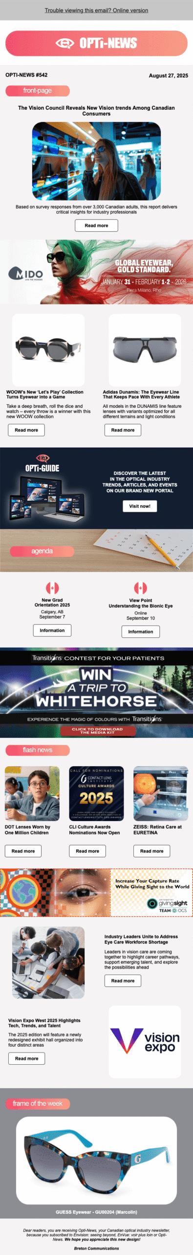 Discover the latest in the optical industry with Opti-News #542. This edition covers The Vision Council's new report on Canadian consumer trends, new collections from...